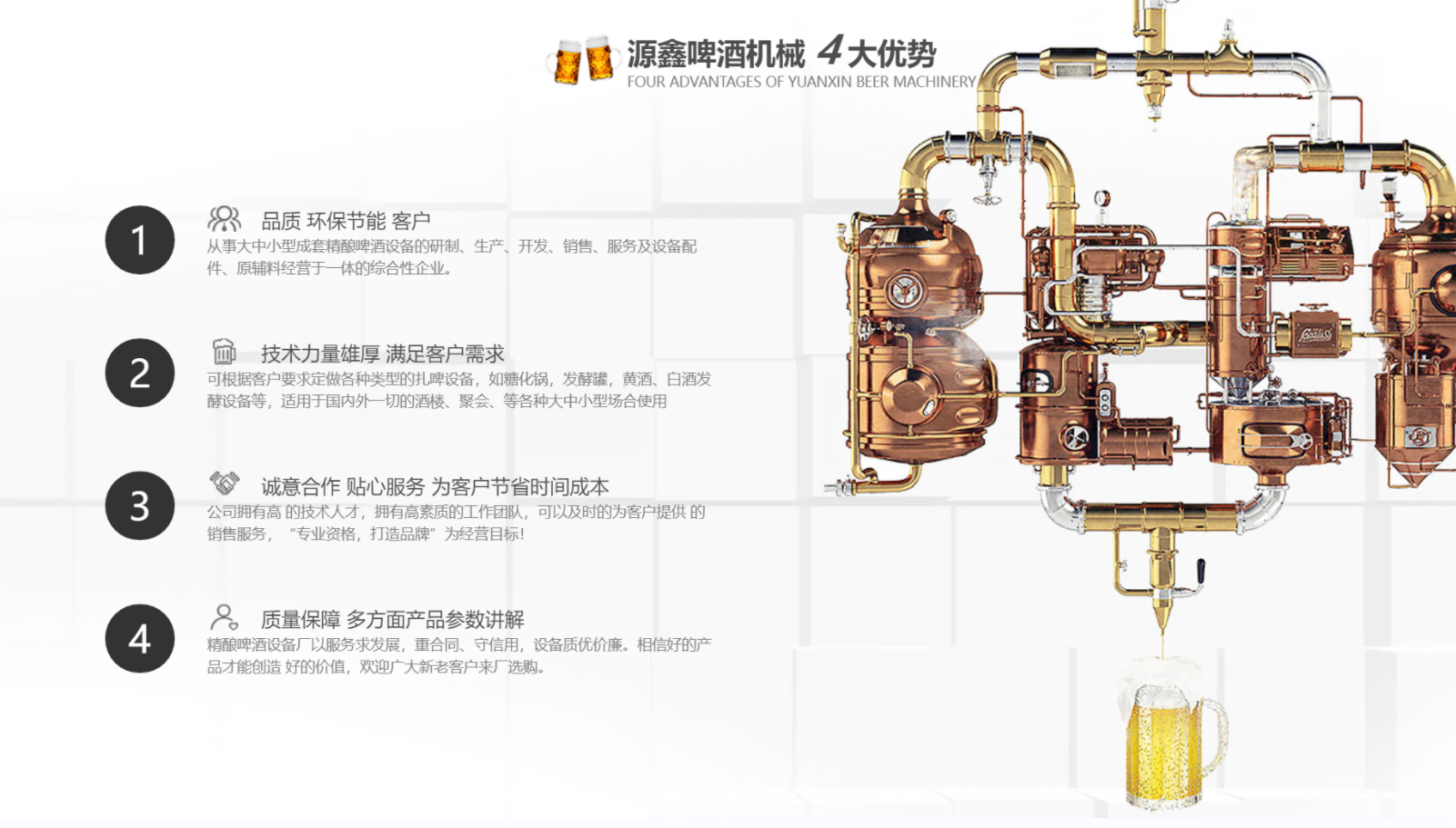 為了追求啤酒獨特個性和地區特點的釀酒理念,從而促進餐廳的快速發展,因此我們使用自...
